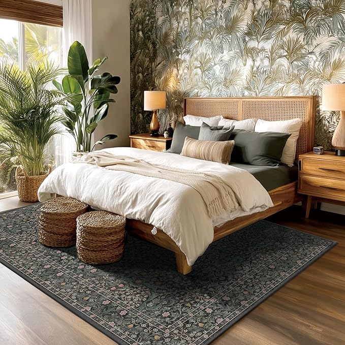 6x9 Area Rugs Washable Green Dining Room Rugs for Under Table