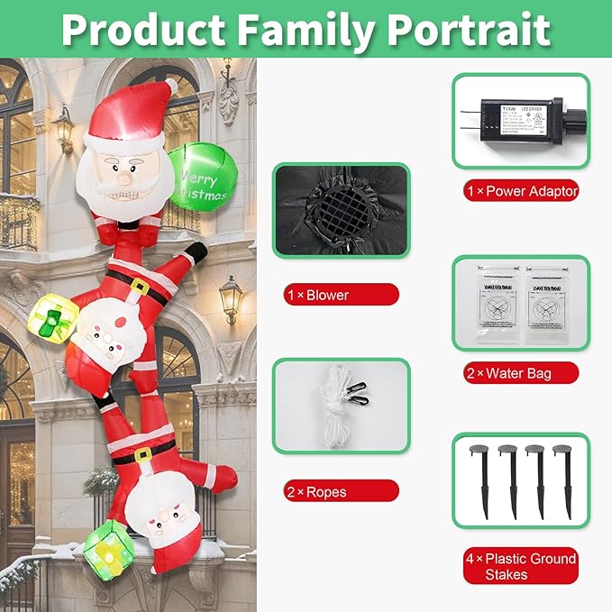 - Quick Self-Inflation Design: Featuring a built-in powerful fan, our decorations inflate automatically in seconds. Simply plug them in and enjoy the best inflatable Christmas decorations ever.