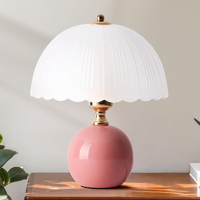 Ceramic Table lamp, Modern Bedside Lamps Pink Mid Century Vintage Desk Lamp Retro Glass Mushroom Traditional Lamp for Nightstand Living Room Bedroom Home Decor (S05PK-1PACK)