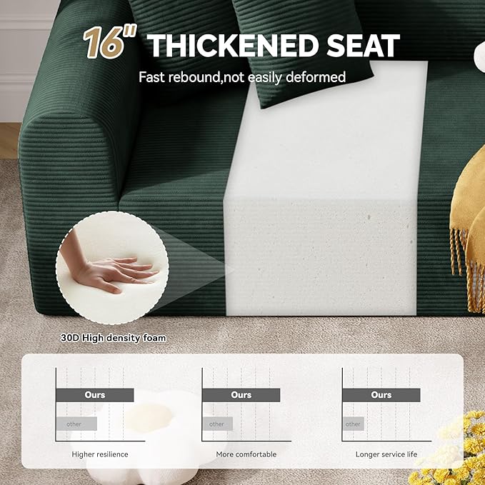 - Comfort Corduroy Fabric: The oversized couch features high-quality corduroy fabric that resists wear and tear while offering a soft, cloud-like feel. The curved couch comes with 3 pillows, perfect for creating a luxurious "sink-in" experience during family movie nights or when entertaining guests.
