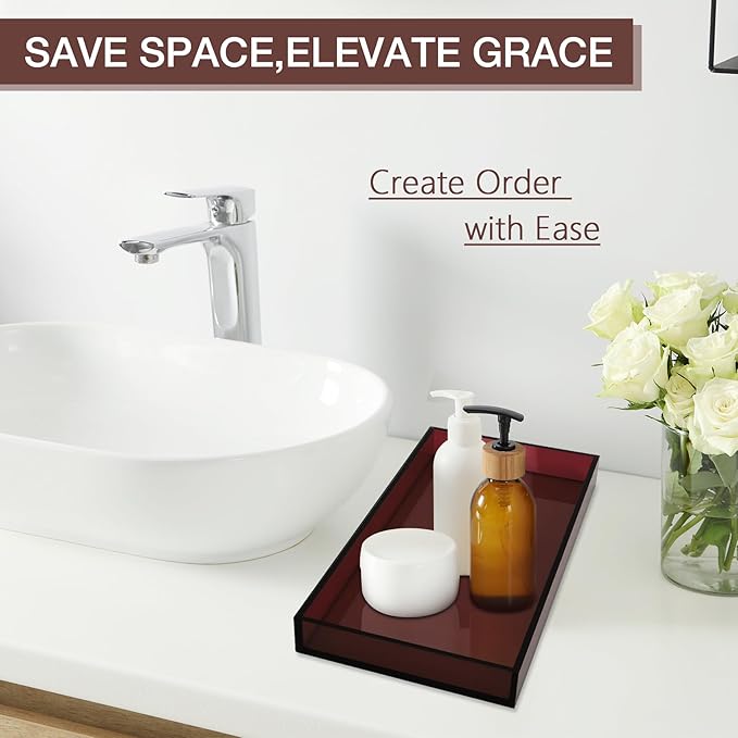 - Versatile Organizer for Every Space:10"L x 5"W x 1"H acrylic tray neatly holds perfume bottles, jewelry,makeup, keys, candles, or kitchen essentials like oil bottles and salt shakers. Ideal for bathroom vanities, office desks, dressers, or kitchen counters