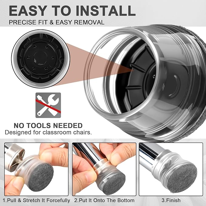 - Precise Fit and Easy Installation: with a height of 1.08 inches and a bottom outer diameter of 1.26 inches, these chair leg covers are highly elastic and specifically designed for classroom chairs; It is easy to install and remove (no cutting or gluing tools are required); Just put it on the bottom of the chair leg; Save time and energy for teachers and school staff