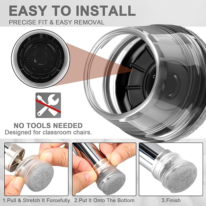 - Precise Fit and Easy Installation: with a height of 1.08 inches and a bottom outer diameter of 1.26 inches, these chair leg covers are highly elastic and specifically designed for classroom chairs; It is easy to install and remove (no cutting or gluing tools are required); Just put it on the bottom of the chair leg; Save time and energy for teachers and school staff