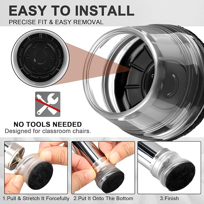 - Precise Fit and Easy Installation: with a height of 1.08 inches and a bottom outer diameter of 1.26 inches, these chair leg covers are highly elastic and specifically designed for classroom chairs; It is easy to install and remove (no cutting or gluing tools are required); Just put it on the bottom of the chair leg; Save time and energy for teachers and school staff