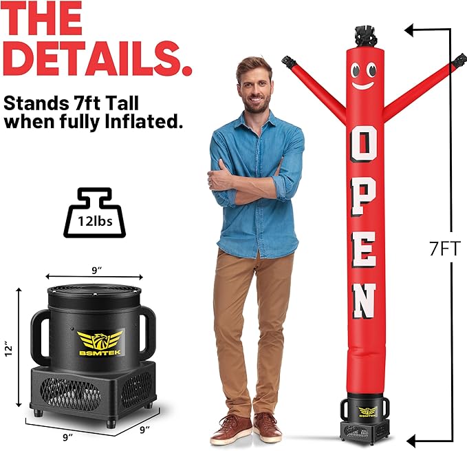 - CREATOR OF JOY - Our Air Inflatable Waving Tube Man are designed with happy faces that swing their hands and bodies in the air, driving tassels together. Attract people's attention and focus on your business and activities. Whether you use it for opening ceremonies, events, etc., it is a great tool for attracting crowds and bringing joy.