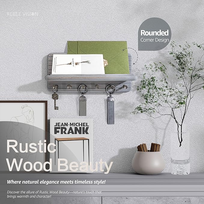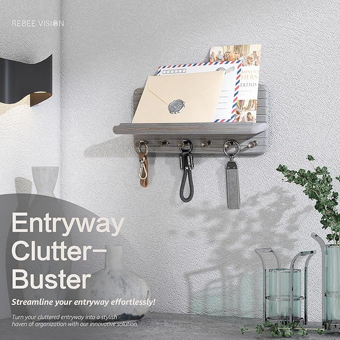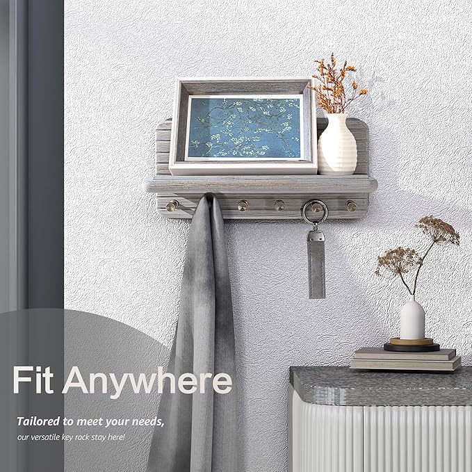 - [HOME DECOR WITH STYLE] Tired of cluttered countertops and misplaced home essentials? This distressed gray key rack wall mount helps you stay organized while adding charm to your space. Perfect for the entryway, study, or hallway, it's not just a practical storage solution but also a stylish aesthetic piece that enhances your wall decor.