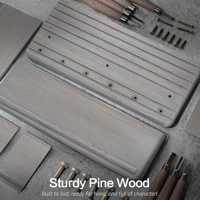 - [STURDY WOOD] Crafted from premium, durable pine wood, this key hanger wall mount boasts an elegant distressed gray finish that complements modern, rustic, and industrial interiors alike. Its robust construction ensures long-lasting performance, adding timeless charm to your living room decor. It's a reliable addition to your office or home.