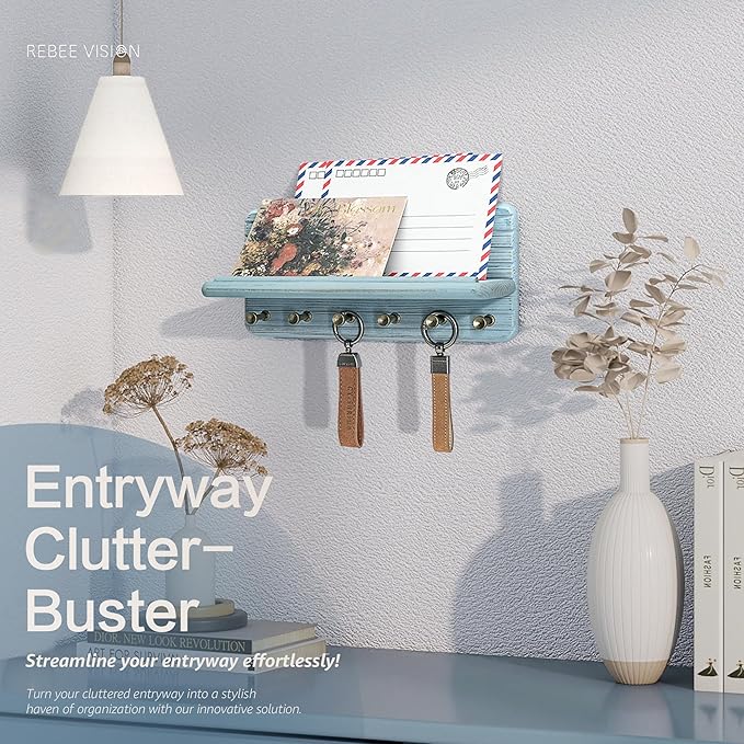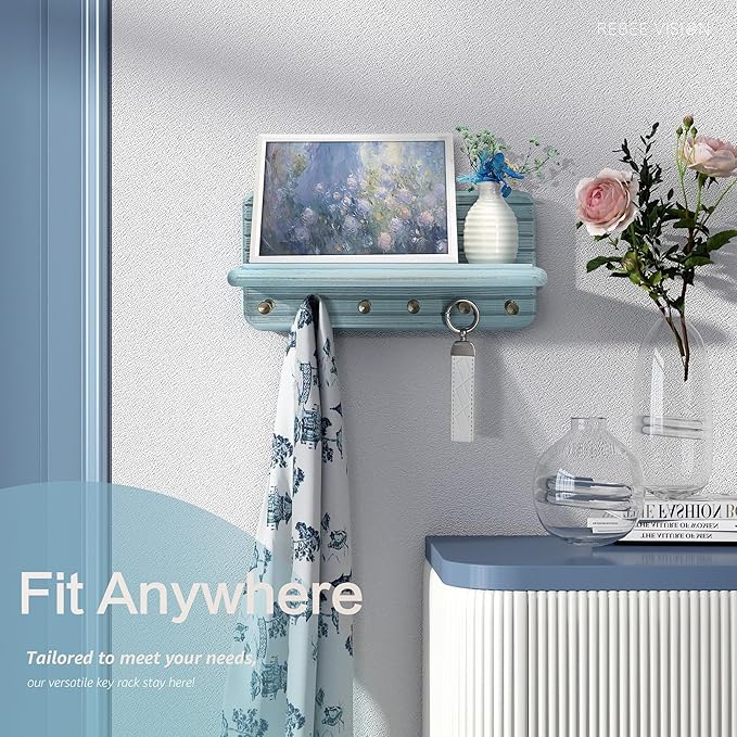 - [BUILT STRONG, DESIGNED BEAUTIFUL] Crafted from premium pine wood and finished in a calming blue tone, this key hanger wall mount captures the essence of rustic beauty. Durable, elegant, and full of vintage character, it’s a statement piece that elevates your room decor aesthetic while standing up to daily use.