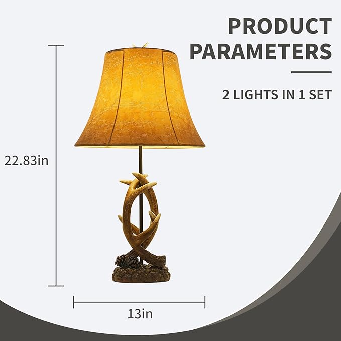 Rustic Western Antler Lamp Set of 2-22.9" Farmhouse Table Lamp with 2 USB Ports, Rustic Nightstand Lamp for Home Room Decor Living Room Bedroom
