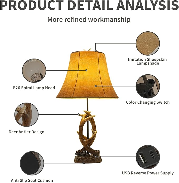 - Unique Antler Design: Handcrafted resin antler base with realistic texture, adding rustic charm to bedrooms, living rooms, or offices.