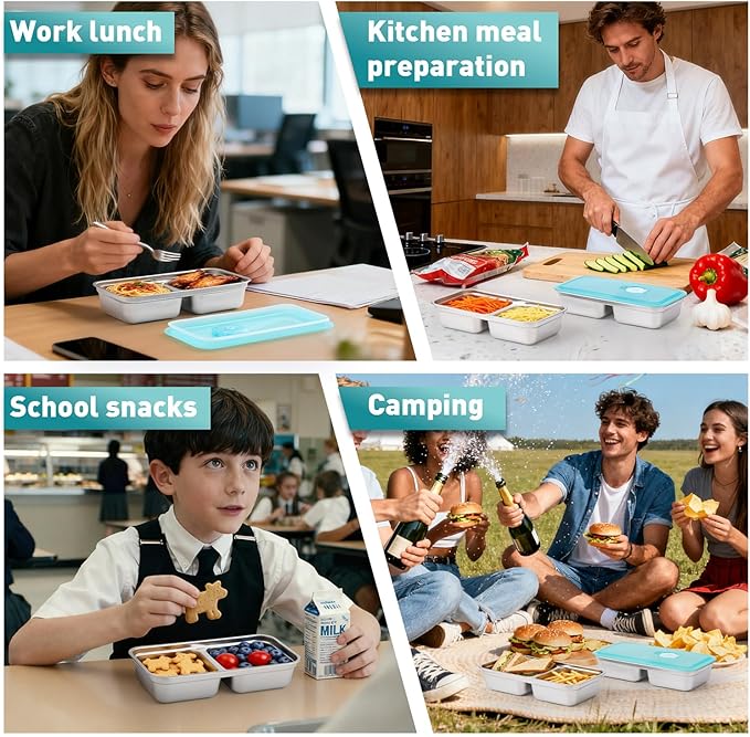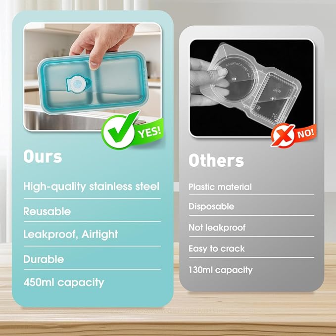 Stainless Steel Snack Containers,Food Storage,2 Compartment,Condiment Containers with Lids,Snack Containers 2 PCS