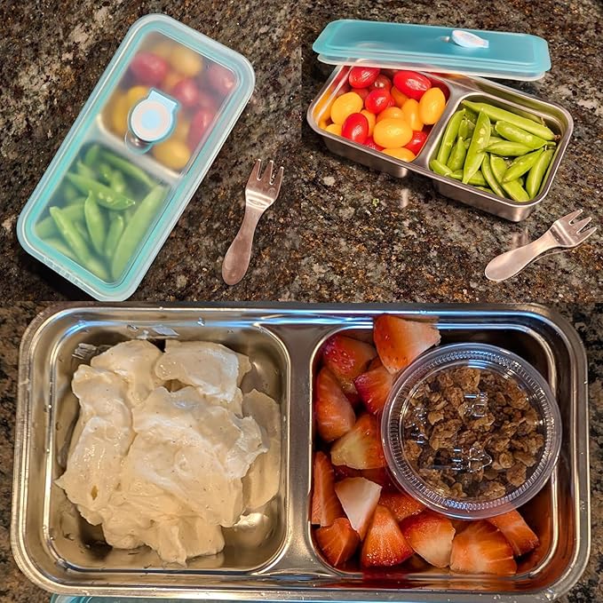 Stainless Steel Snack Containers,Food Storage,2 Compartment,Condiment Containers with Lids,Snack Containers 1 PCS