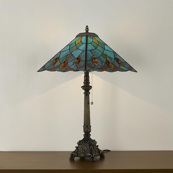 Tiffany Table Lamps Sky Blue Stained Glass Crystal Style Mission Desk Lamp 12X12X24 Inch Bronze Resin Base