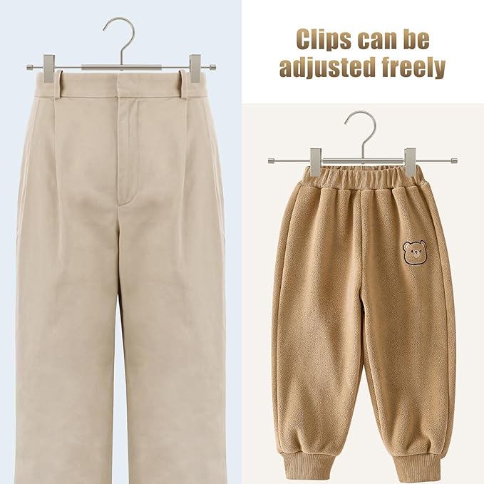 - 【High-Quality Pants Hanger】Pants hanger with clips is not easy to bend under the protection of coating and chrome plating, and the metal is not easy to rust. Make the wardrobe look cleaner and improve the overall grade of the hanger.