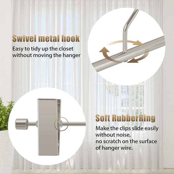 - 【Hanger Adjustable Clips】The skirt hanger with clips is equipped with 2 adjustable clips, which are flexible to adjust. Compared with other hangers with hard hook rotation and clips that do not slide smoothly, our hangers have obvious advantages.