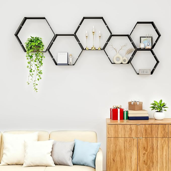 - Durable and sturdy: The hexagon floating shelf material is made of ironwork, which is more solid and lasts longer