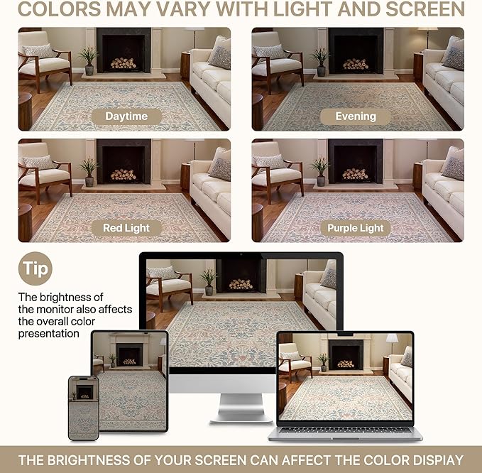 - Machine Washable Rug: This low pile rug eliminates the hassle of deep cleaning! The thin rug design with soft pile keeps most dirt on the surface, making daily maintenance easy—just vacuum or spot clean. The added bonus is that the entire washable carpet is machine washable in cold water (no bleach or softener needed), making cleanup effortless and saving you valuable time