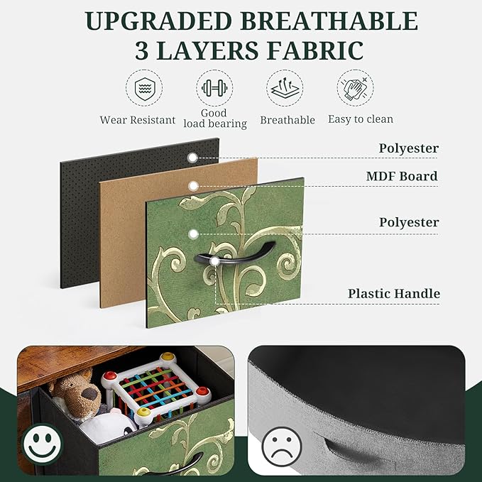 - 【Sturdy & Durable Construction】 Built with a strong steel frame and water-resistant MDF wooden top, this tall nightstand supports up to 44 lbs. Breathable, non-toxic fabric drawers slide smoothly for easy daily use.