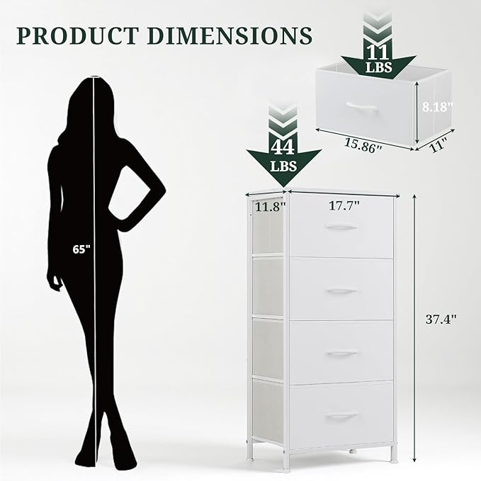 - 【Spacious 4-Drawer Storage】 Features four deep fabric drawers and a durable wooden top, providing ample space for clothes, accessories, books, and household essentials while keeping your space neat and organized.