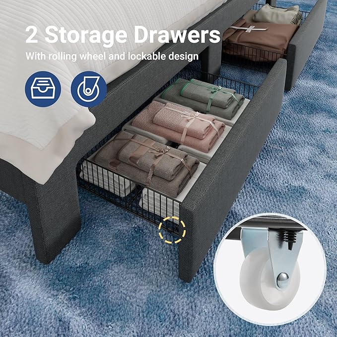 - Smart Storage Design: This upholstered full size bed features 2 spacious pull-out drawers at the footboard, providing ample storage space for bedding, clothes, and blankets. A perfect solution for a tidy and organized bedroom