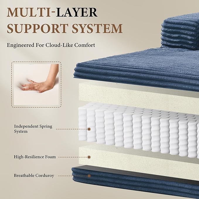 - Luxurious & Low-Maintenance Corduroy:Sink into sumptuous softness with our premium corduroy upholstery, this sofa offers an irresistibly plush feel you'll love to sink into. The durable, family-friendly fabric resists wrinkles, stains, and everyday wear, making cleanup effortless. Plus, its textured surface only grows more characterful over time—developing a soft, lived-in charm that ages beautifully.
