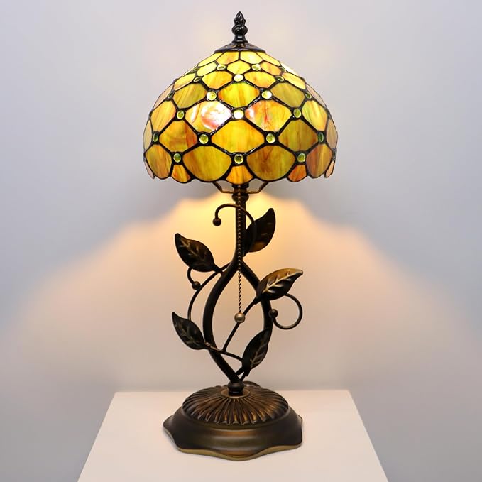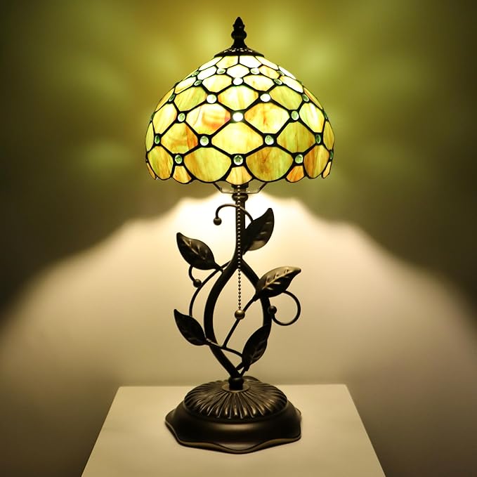 - Base and lampshade material: Bronze resin metal leaves base, high-end appearance, the whole is very strong; The lampshade is colored glass, hand-made by copper foil welding method, rich in color.
