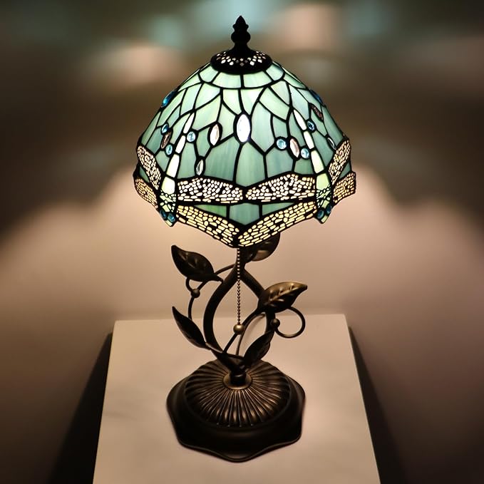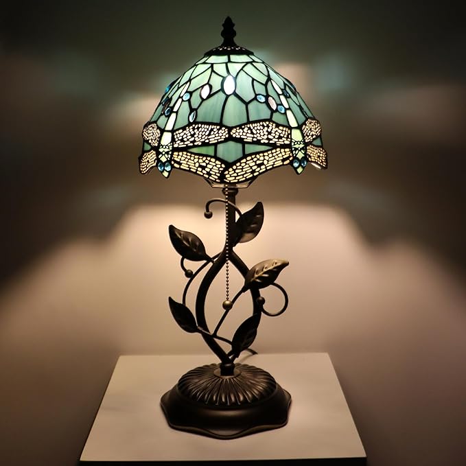 - Base and lampshade material: Bronze resin metal leaves base, high-end appearance, the whole is very strong; The lampshade is colored glass, hand-made by copper foil welding method, rich in color.