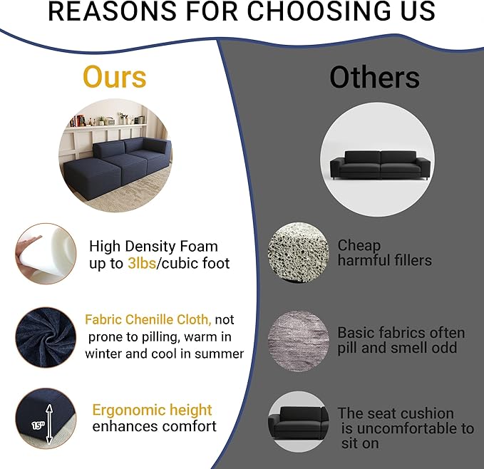 - Modular Flexibility: Armless, Conner, Ottoman, base unit enables free assembly into straight/L-shaped/U-shaped layouts. Pair with additional modules (sold separately) for custom configurations.(Spot clean recommended).