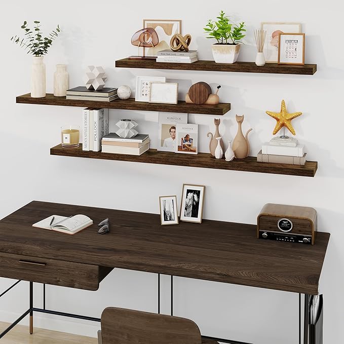 - Elevate Your Decor: These rustic wood floating shelves are the perfect addition to any room, offering ample space to display decor or store essentials. Made with premium engineered wood, they seamlessly blend with various interior styles, adding a touch of charm and sophistication