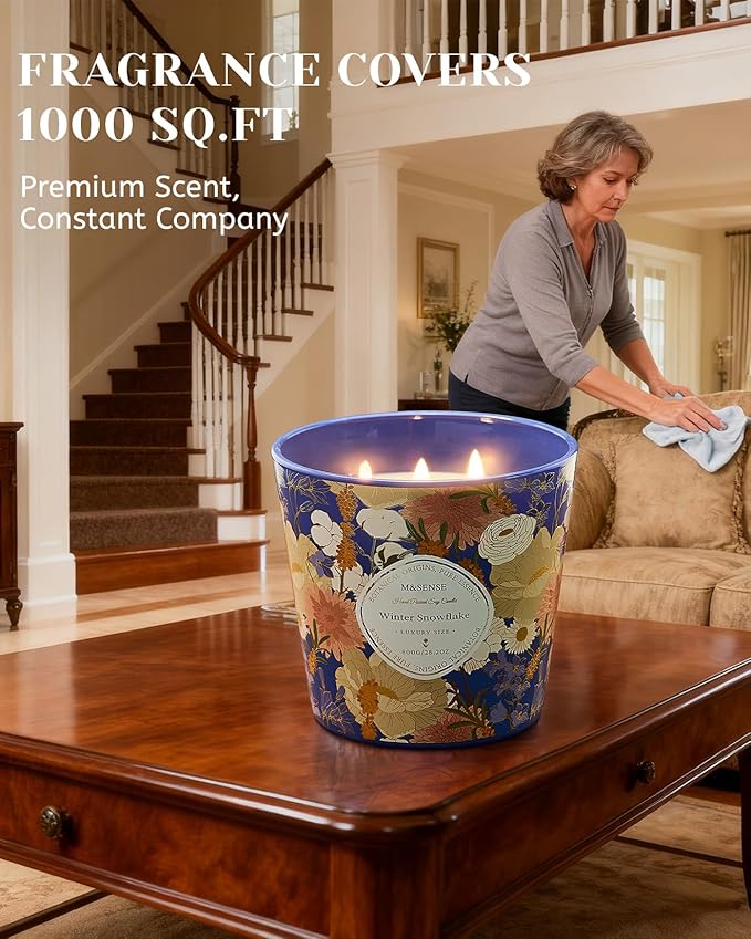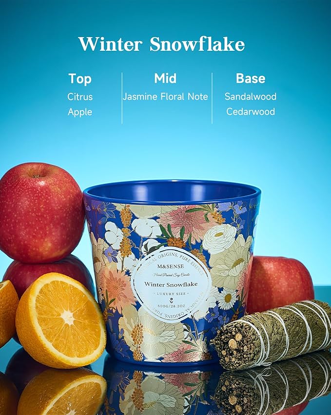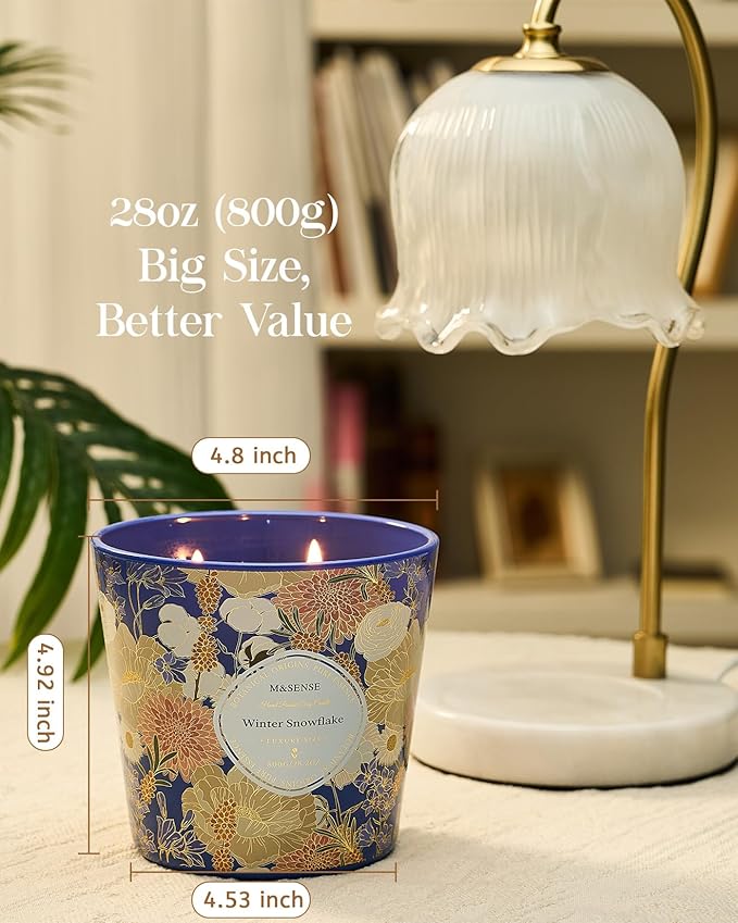 M&SENSE Winter Snow Flake Scented Candle, 28.2oz 3 Wick Natural Soy Wax Large Candles, Long Lasting Clean Slow Burning No Toxic Décor for Home Relaxation, Romantic Dates & Gift-Giving