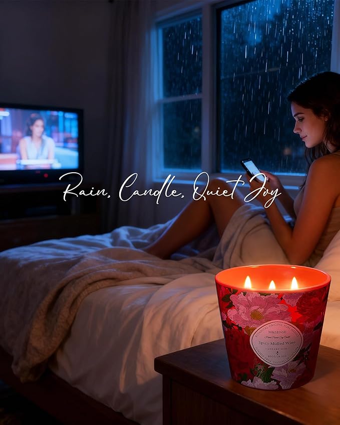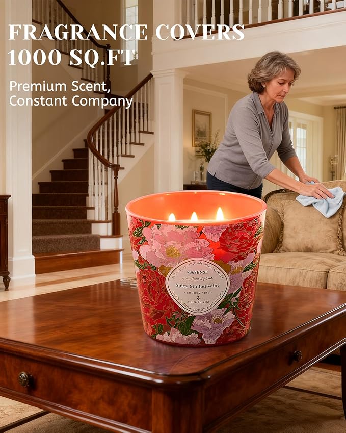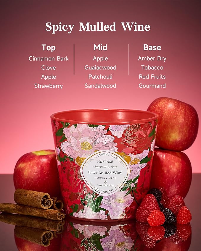 M&SENSE Spicy Mulled Wine Scented Candle, 28.2oz 3 Wick Natural Soy Wax Large Candles, Long Lasting Clean Slow Burning No Toxic Décor for Home Relaxation, Romantic Dates & Gift-Giving