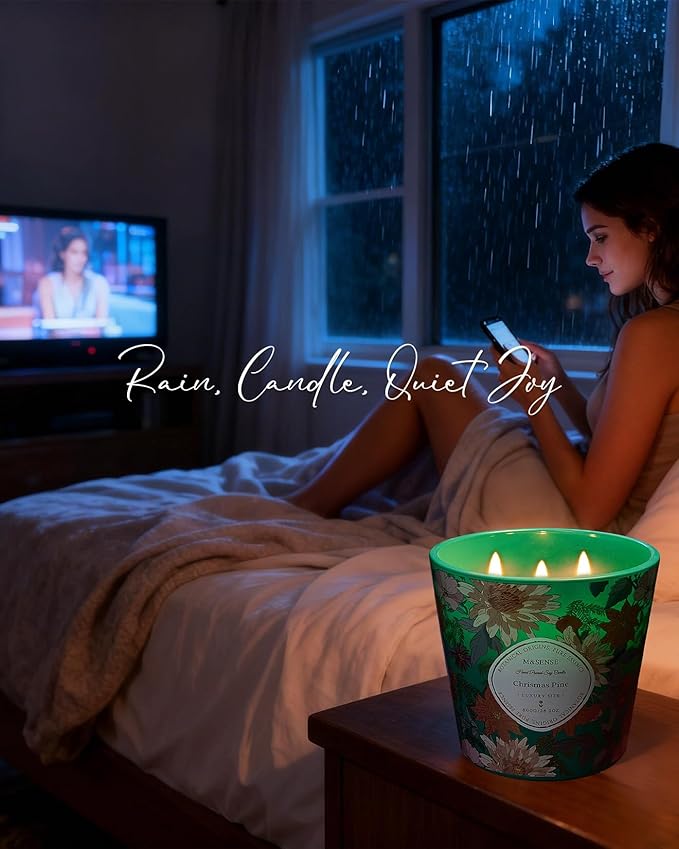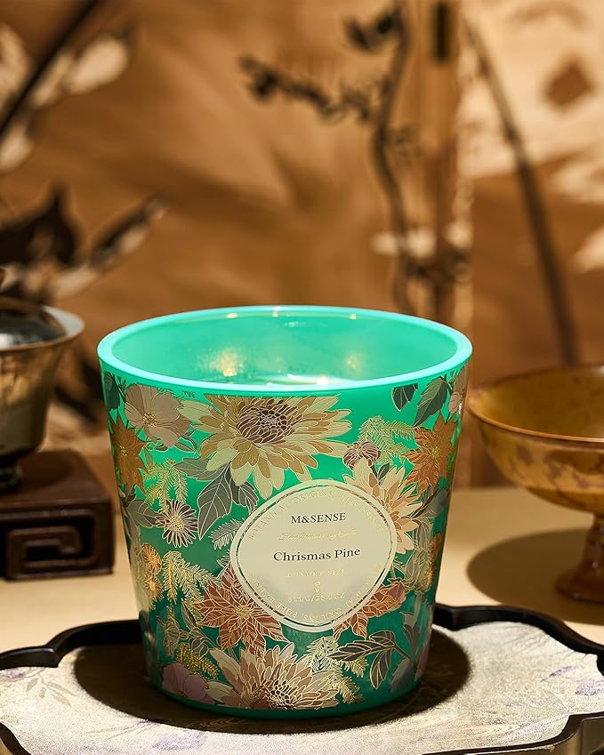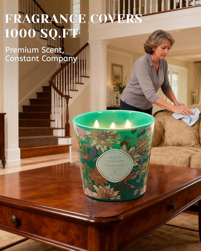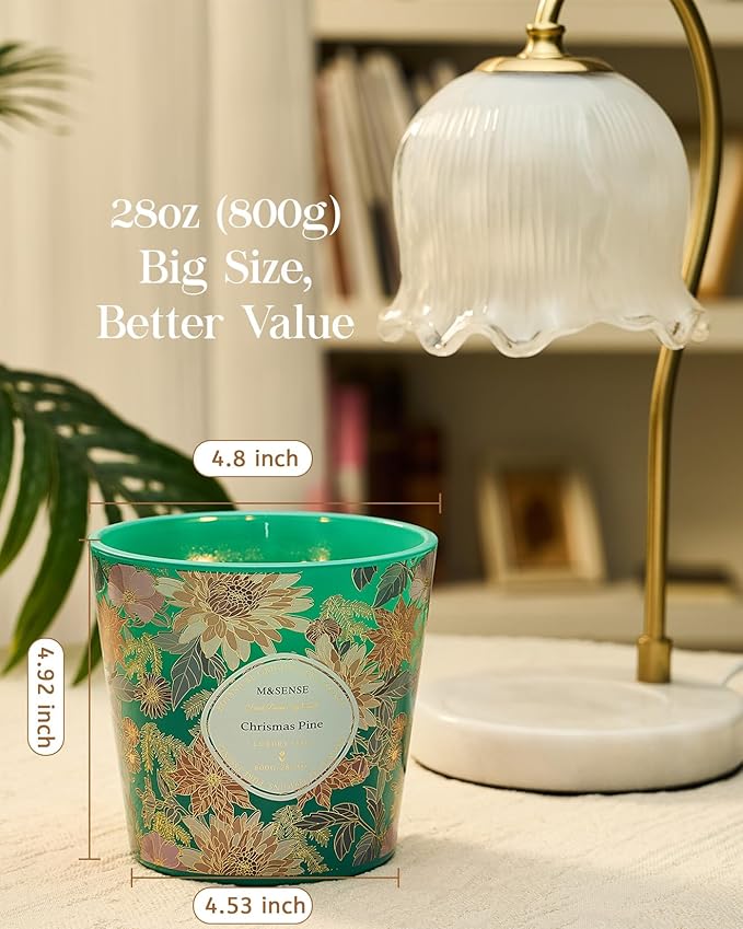M&SENSE Christmas Pine Scented Candle, 28.2oz 3 Wick Natural Soy Wax Large Candles, Long Lasting Clean Slow Burning No Toxic Décor for Christmas, Romantic Dates & Gift-Giving