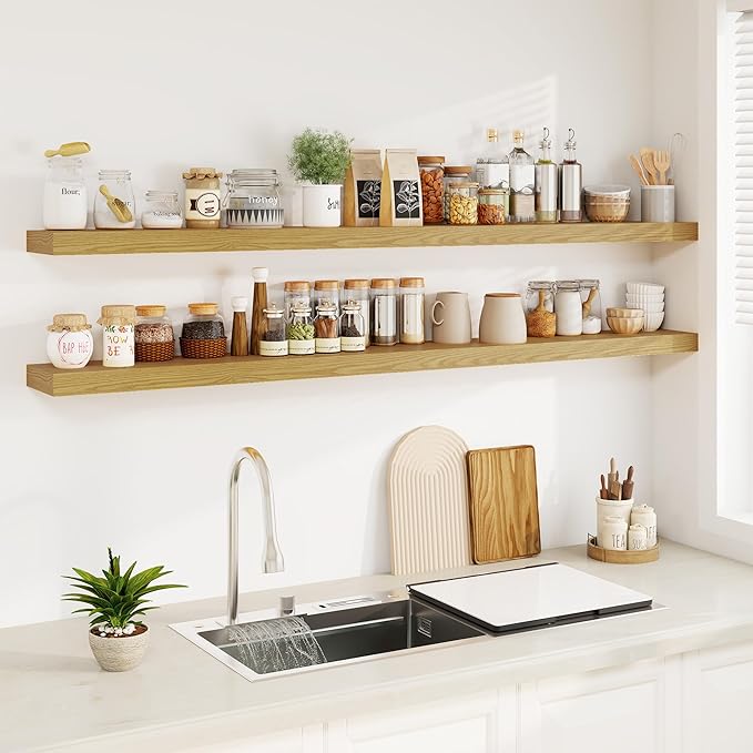 - Stylish & Practical: These 72 inches floating shelves offer both aesthetics and functionality, serving as an elegant backdrop for your decor pieces while also providing practical storage solutions. Perfect for any room in your home
