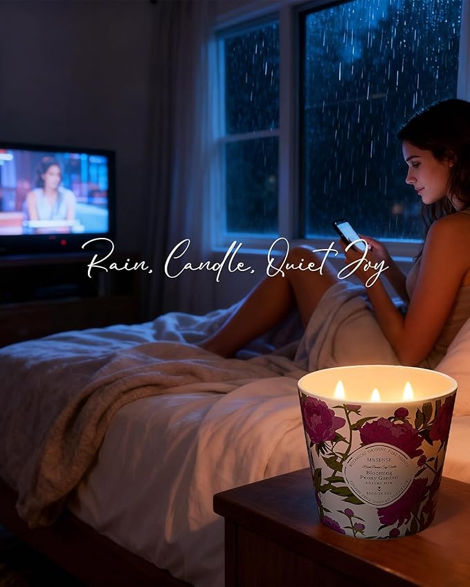 M&SENSE Blooming Peony Scented Candle, 28.2oz 3 Wick Natural Soy Wax Large Candles, Long Lasting Clean Slow Burning No Toxic Décor for Home Relaxation, Romantic Dates & Gift-Giving