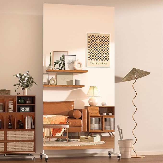 - 👍【Extra Large Floor Mirror】The large full length mirror offers a wide-angle view, perfect for gyms, dance studios, yoga rooms, or home use, capturing every detail of your movements. The floor mirror can be an accent piece for any room. The modern style mirror can match almost any type of room decoration, making your space more open and bright.