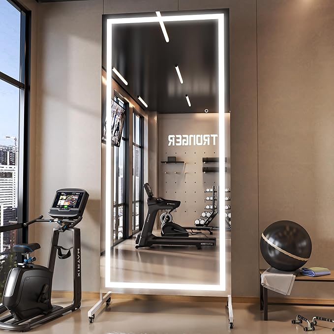 - 👍 LED Mirror on Wheels – Full-Length Lighting You Can Move Equipped with built-in dimmable LEDs offering 3 colors—warm (3000K), natural (4000K), cool (6000K). Short press to switch modes, long press to adjust brightness (15%-100%). A true move mirror with light, perfect for yoga, makeup, dressing, and late-night workouts.