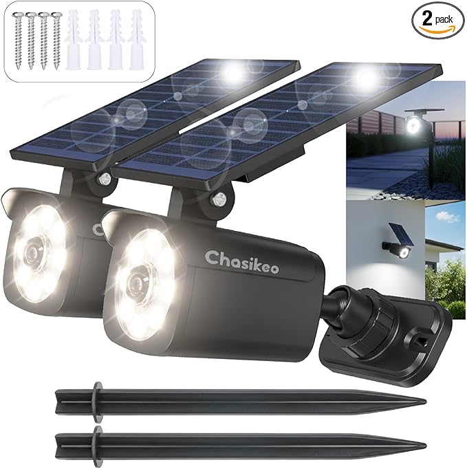 Chaiskeo 2 Pack Solar Motion Lights Outdoor, Solar Spot Lights with Motion Sensor, IP67 Waterproof Solar Powered Security Lights, LED Spotlight for Garden, Yard, Pathway, Fence, Driveway