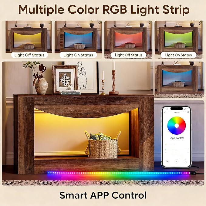 Farmhouse Console Table, 47 Inches Entryway Console Table with LED Light, Sofa Table Behind Couch, Wooden Accent Entryway Table for Living Room, Hallway