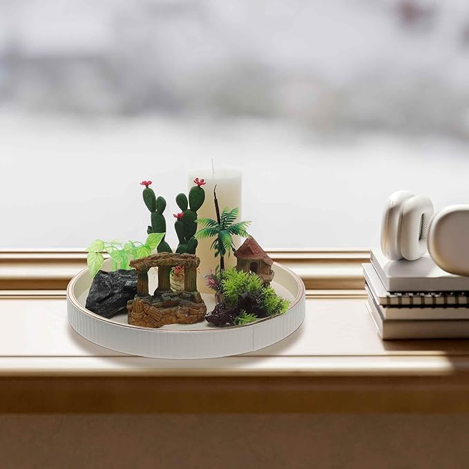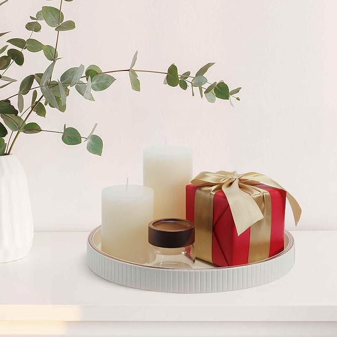 - Space-Efficient Round Shape: Measuring 11.8 inches in diameter and 1.18 inches in height, this round tray provides ample space for organizing small items efficiently. Its compact design allows for easy identification and access to items like candles, perfumes, keys, and more. When not in use, stack them up to save space conveniently.