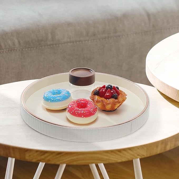 Decorative Tray, Round Tray Decor, Desk Organizer for Coffee Table, Living Room, Kitchen Counter, Beige