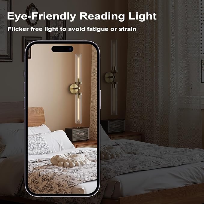 - 【Unique Home Decoration】: This sconces wall lighting features a modern and vintage industrial design style, exuding elegance and beauty. The elongated glass tube shade allows light to disperse farther and brighter. It can be installed facing upwards or downwards, making it highly suitable for bathrooms, mirrors, dressing rooms, hallways, kitchens, living rooms, and laundry rooms.