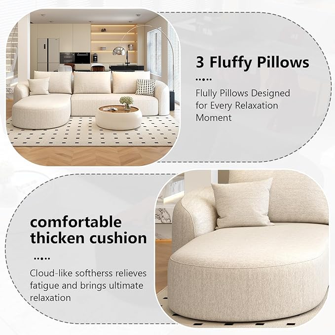 - Cloud-Like Design:Our minimalist modular sectional sofa features smooth chenille and sleek, curved lines that add a touch of luxury and comfort. Thanks to its high-resilience foam filling, thick armrests, and deep cushions, it provides a truly cloud-like sitting experience that delivers excellent elasticity and support. The removable pillow covers make cleaning easy.