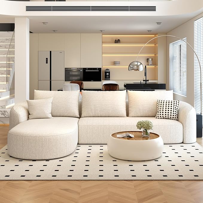 111" Modular Sectional Couches Luxury Modern Curved Back Sofa,Minimalist Comfy L-Shape Boneless Cloud Couch for Living Room Apartment,(Left Facing Chaise,White)