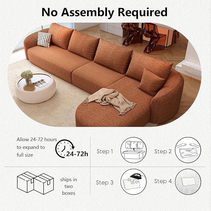 - No Assembly Required:Be ready in 1 step! Setting up this cloud couch is incredibly easy. Simply unbox the cushions, place them together, and let them naturally expand over 24-72 hours. No extra tools or complicated assembly steps are needed. It’s ready to use this cloud sofas for living room with minimal effort.