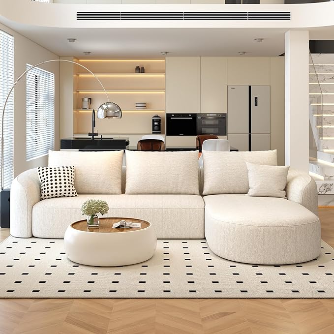 111" Modular Sectional Couches Luxury Modern Curved Back Sofa,Minimalist Comfy L-Shape Boneless Cloud Couch for Living Room Apartment,(Right Facing Chaise,White)