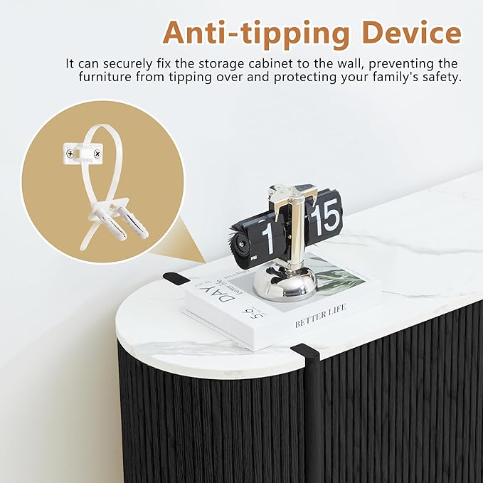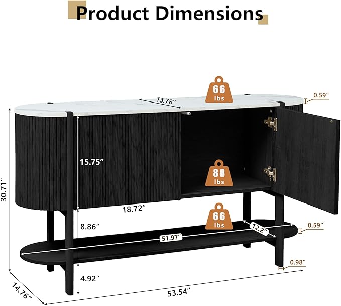 - Modern Console Table: Elevate your living space with this long console table that serves as a beautiful accent cabinet. The fluted panel complement the curved edges and rounded legs, blending seamlessly with your home decor. The beautiful artificial marble on the tabletop blends minimalism with art, making it a versatile choice. It complements a variety of home styles, from mid-century modern to farmhouse.