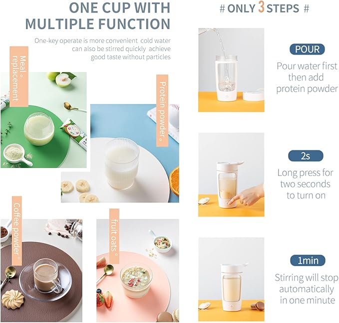 - EASY TO CLEAN - Pours a neutral detergent into our shake cup or just water into it and click the motor buttom to clean itself. Allow the shaker to create a vortex and rinse it.
