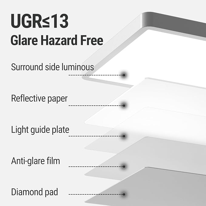 - 【Blue Light Hazard-Free】 Emits stable, soft light that safely mimics the warmth of natural daylight. Certified Flicker-Free and classified as RG0 (Safe Level) for blue light hazard, effectively reducing eye irritation and visual fatigue. The optimal health lighting solution for students and professionals working from home.