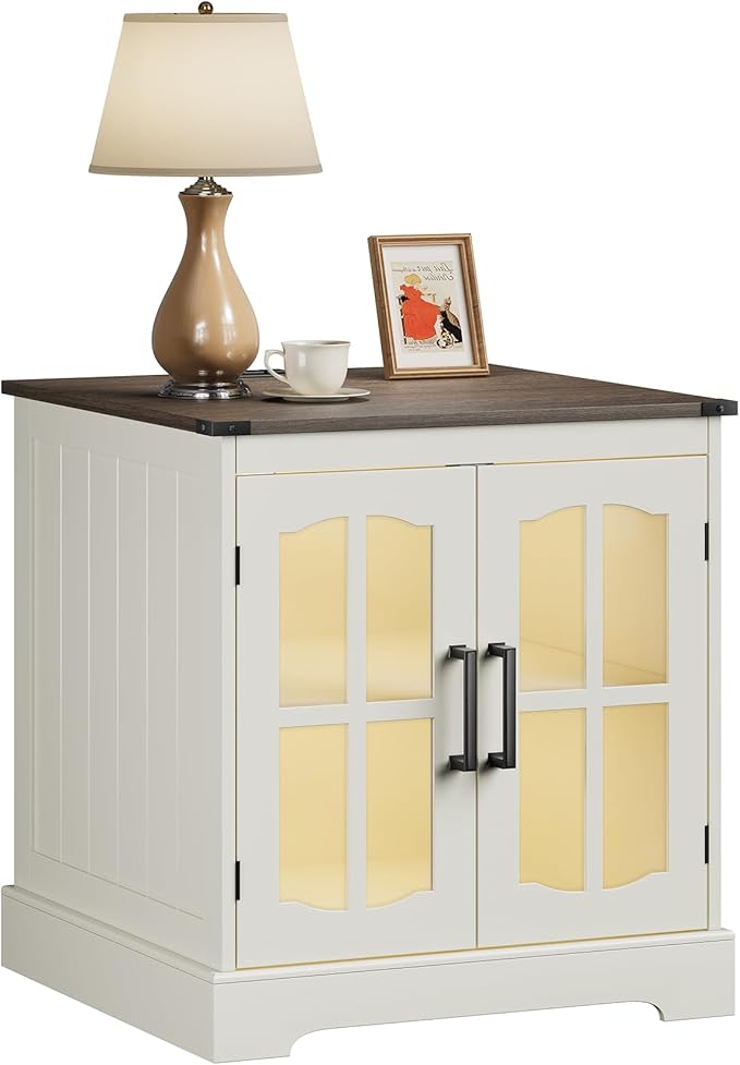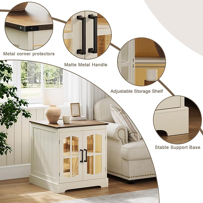 - 【Farmhouse Design】This 24-inch living room side table features a classic farmhouse design with elegant glass doors, blending style and functionality seamlessly. Whether placed in the living room, bedroom, or office, it adds a warm, vintage touch to your space