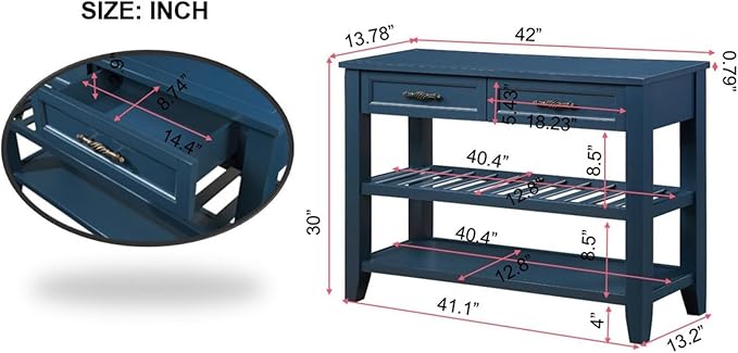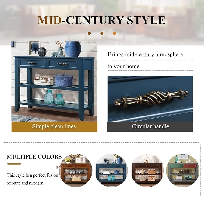 - 【Large Storage Capacity】This console table with storage drawers includes 2 drawers and 2 open shelves, providing ample space for organizing bowls, plates, vases, or books. Perfect as an entryway table or sofa table, it keeps your items neatly stored and displayed.